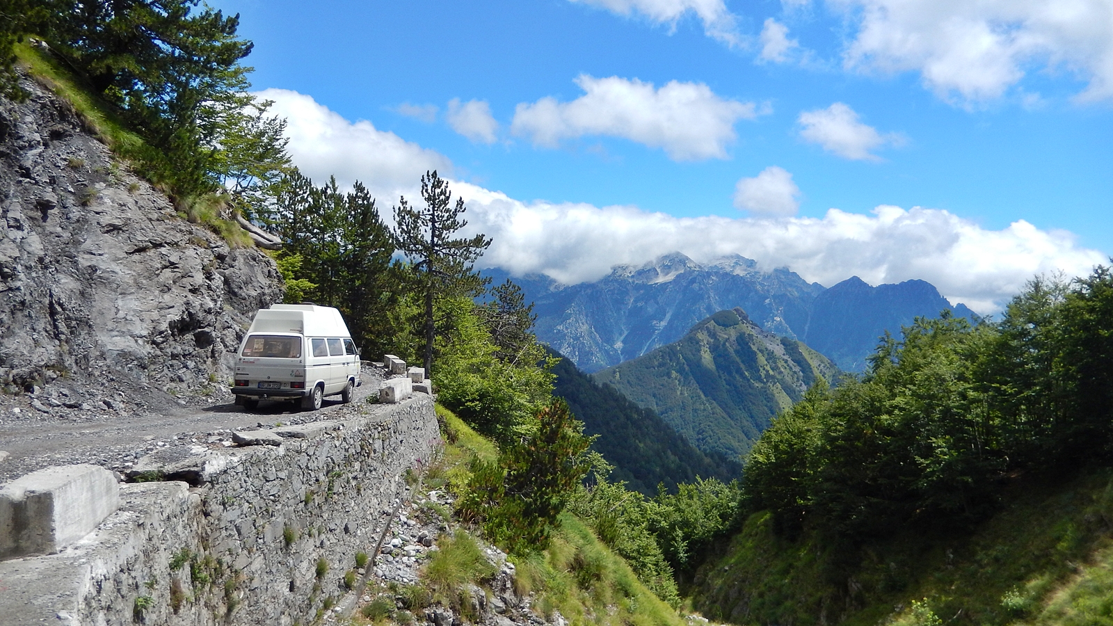 Generell sind Bullis sehr robuste Fahrzeuge. Obwohl auch und Gerade in Albanien oft davon abgeraten wird, bestimmte Strecken ohne Allrad zu fahren, werden Dir die Einheimischen mit einem Bulli jedes Mal sagen, die Straße sei problemlos befahrbar, da es ansich hauptsächlich auf die Bodenfreiheit ankommt. Viele Albaner selbst fahren 30 Jahre alte Mercedes-Limousinen oder klapprige Dacia-Kleinwagen mit sechs Personen besetzt über die Straßen, vor denen viele Bulli-Fahrer Angst haben, dass der Bulli sie nicht schaffen würde. 🙂