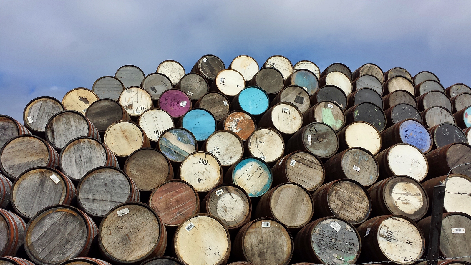 Hinter den Produktionsgebäuden lagern hunderte, nein tausende von Fässern. Zu Pyramiden von bis zu 11.000 Fässern gestapelt können so bis zu 200.000 Fässer auf dem Gelände gelagert werden. Heute sind die Pyramiden nicht vollständig, gerade einmal die Hälfte der Kapazität wird ausgeschöpft; der Anblick ist nicht minder beeindruckend.