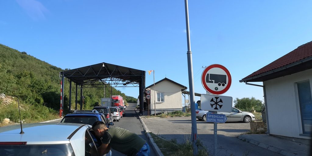 Eine gute Stunde später erreiche ich die kroatisch-bosnische Grenze. Vor mir ist kein anderes Fahrzeug, ich komme sofort dran. Kurze Sichtkontrolle von Fahrzeugschein und grüner Versicherungskarte und kurzes Einscannen des Personalausweises – nach nicht mal einer Minute wünscht mir der freundliche Grenzer eine gute Fahrt und schon habe ich die EU verlassen. Das war mal wieder so unkompliziert, wie es eigentlich immer sein sollte.