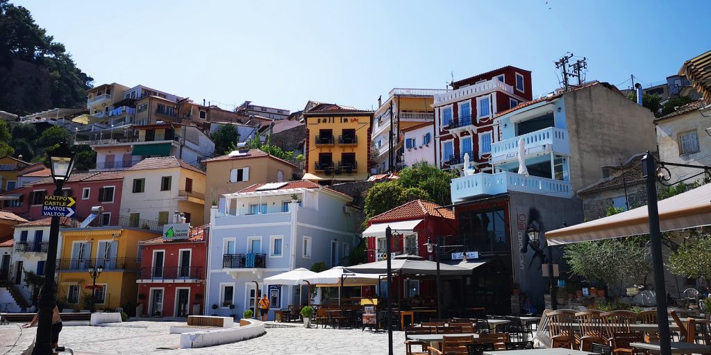 In Párga finde ich auf Anhieb einen Parkplatz, was durchaus mehr Glück als Verstand zu sein scheint. Ein quirliger Touristenort, der hauptsächlich von Tagestouristen von den umliegenden Inseln Korfu und Paxi überlaufen werden soll. Der erste Eindruck von etwas oberhalb der Bucht ist durchaus sehenswert, und so schlendere ich hinein in die kleinen Gassen des 2.500-Einwohner-Ortes, vorbei an jeder Menge Touristenläden, Bars, Cafés und Tavernen.